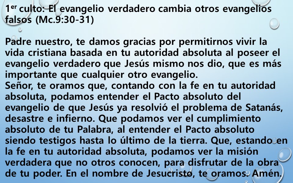1er culto: El evangelio verdadero cambia otros evangelios falsos (Mc.9:30-31)