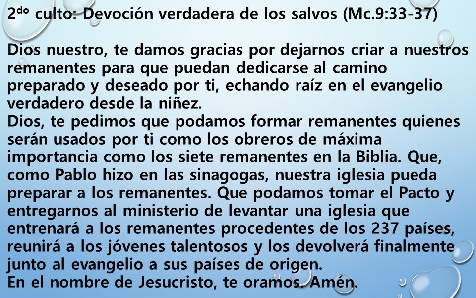 2019년 12월 22일 주일예배 기도제목 – 스페인어