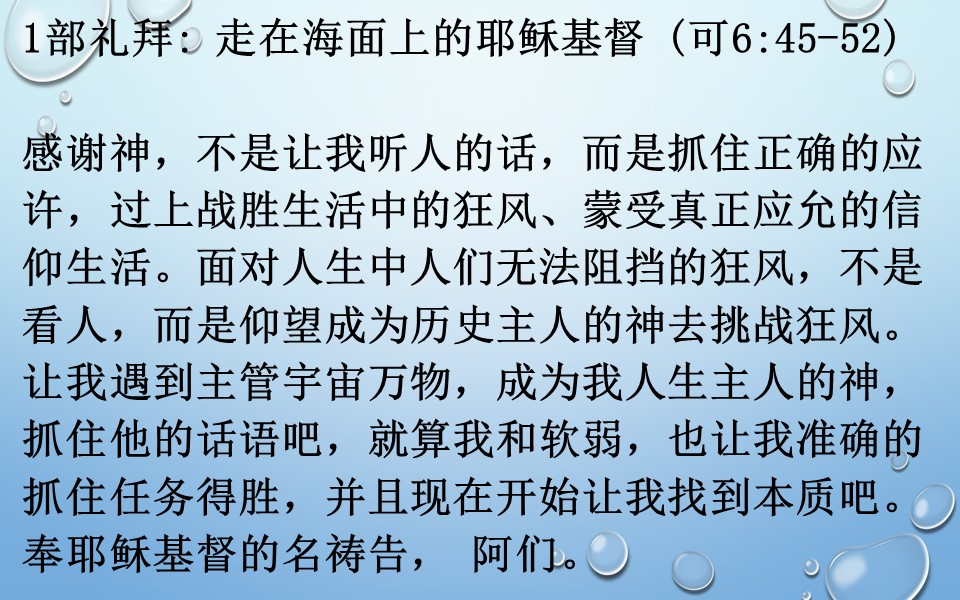1部礼拜: 走在海面上的耶稣基督 (可6: 45-52)