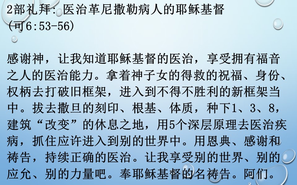 2部礼拜: 医治革尼撒勒病人的耶稣基督 (可6: 53-56)