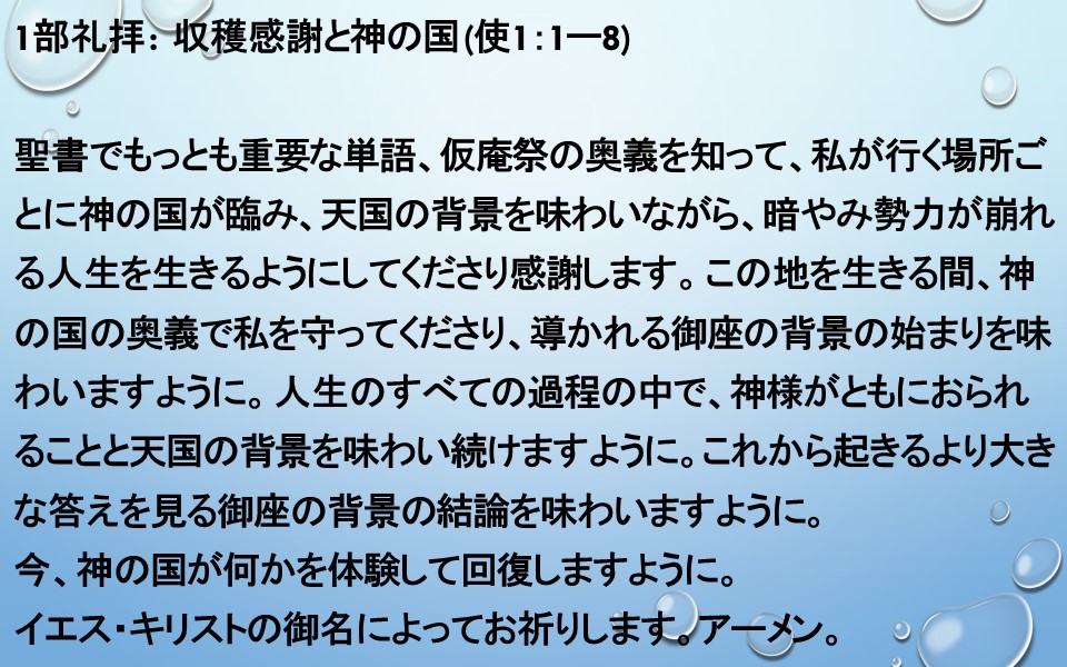 1部礼拝 :  収穫感謝と神の国 (使1:1ー8)
