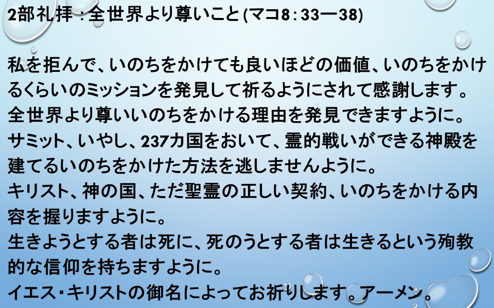 2部礼拝 :全世界より尊いこと (マコ8:33ー38)