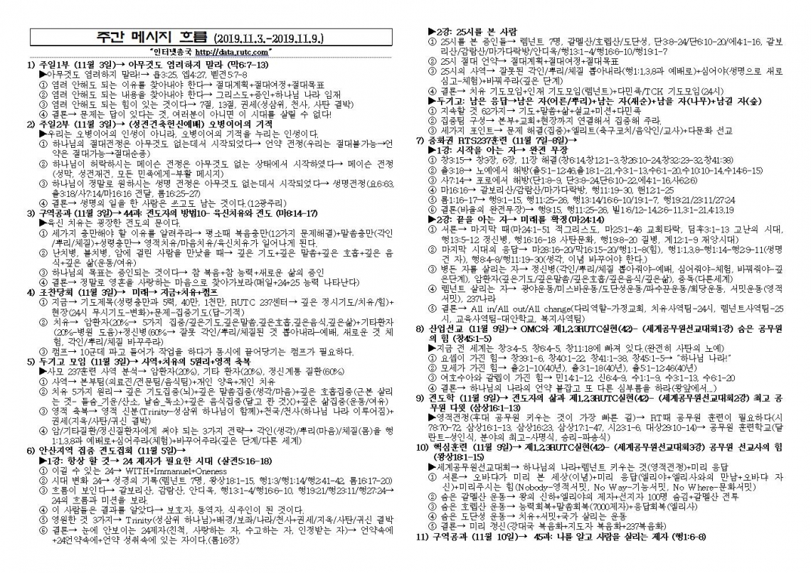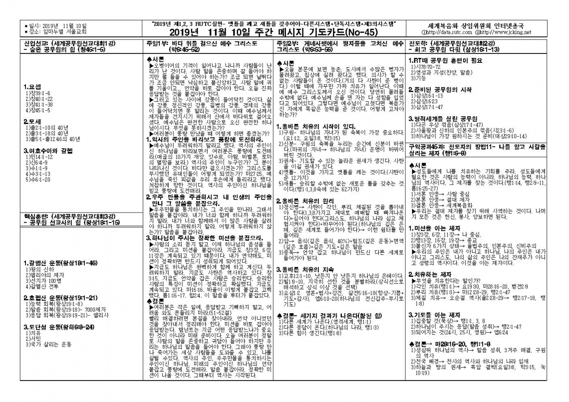 2019년 11월 10일 주일예배 메시지 기도카드