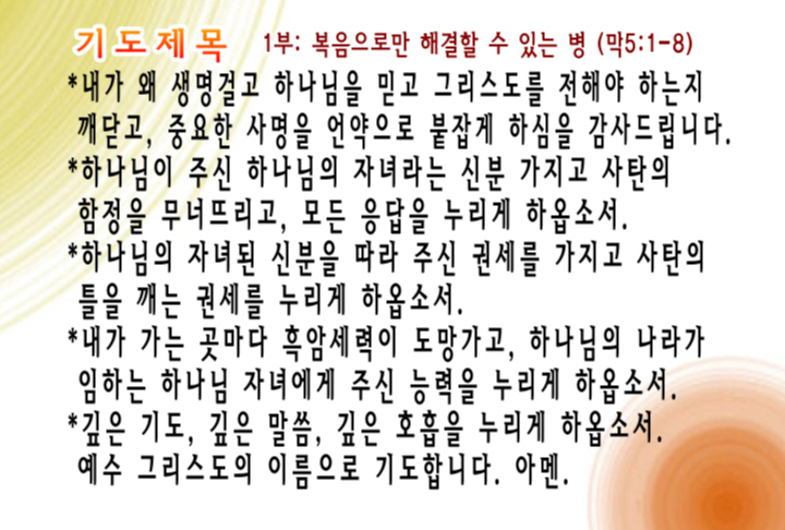 1부 예배: 복음으로만 해결할 수 있는 병 (막5:1-8)