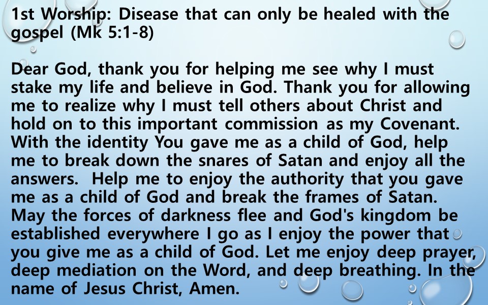 1st Worship: Disease that can only be healed with the gospel (Mk 5:1-8)