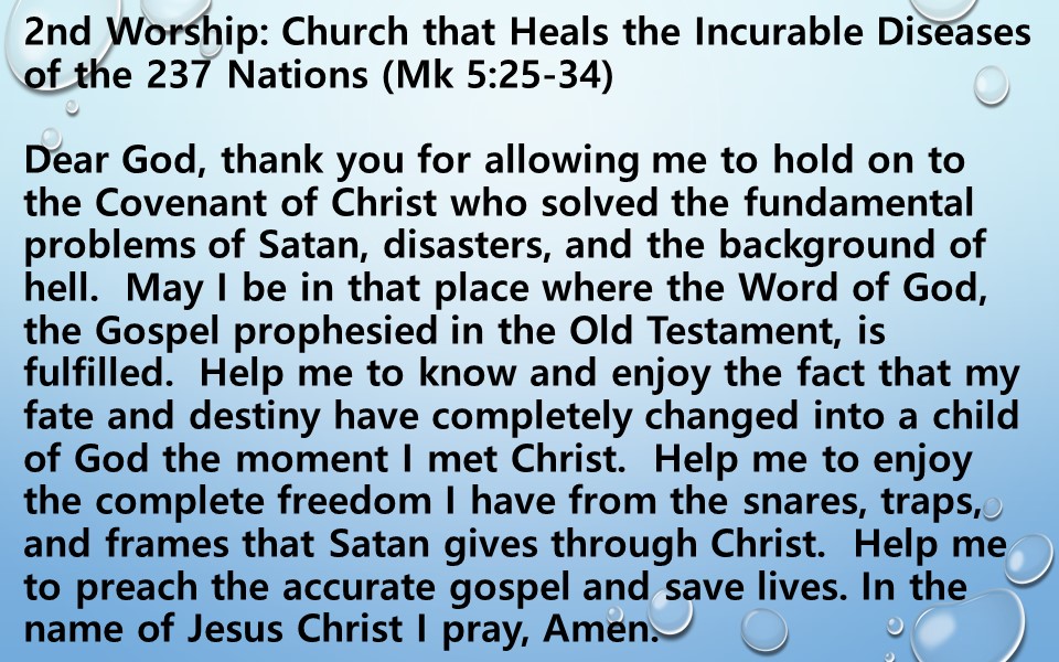 2nd Worship: Church that Heals the Incurable Diseases of the 237 Nations (Mk 5:25-34)