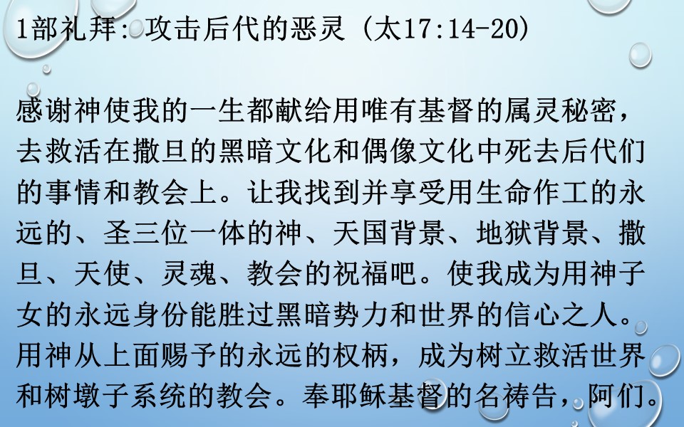 1部礼拜: 攻击后代的恶灵 (太17: 14-20)