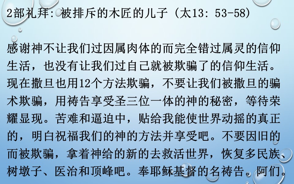 2部礼拜: 被排斥的木匠的儿子 (太13: 53-58)