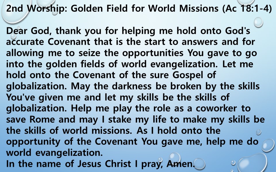 2nd Worship: Golden Field for World Missions (Ac 18:1-4)