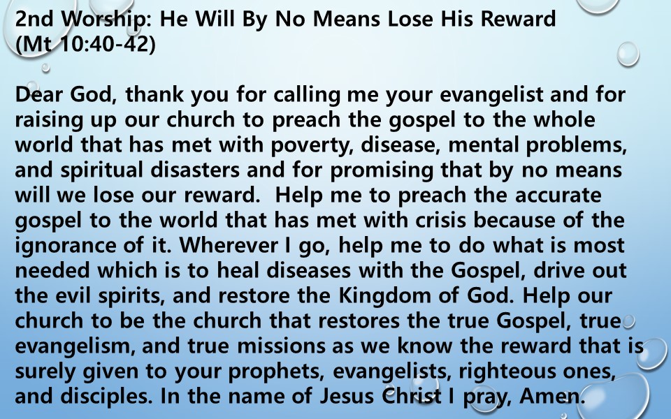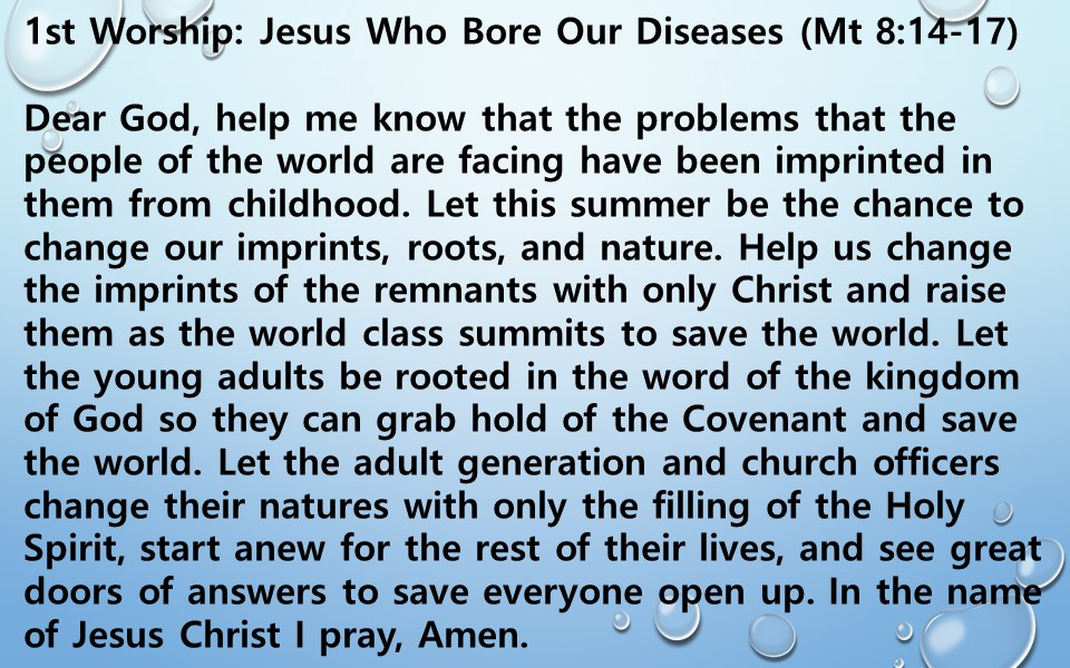 2019년 7월 14일 주일예배 기도제목 – 영어