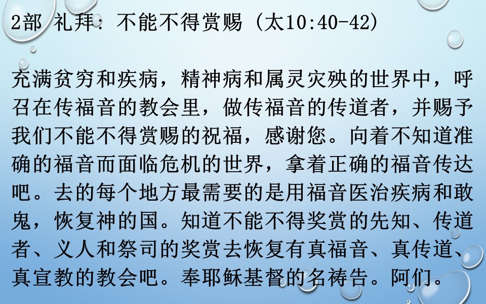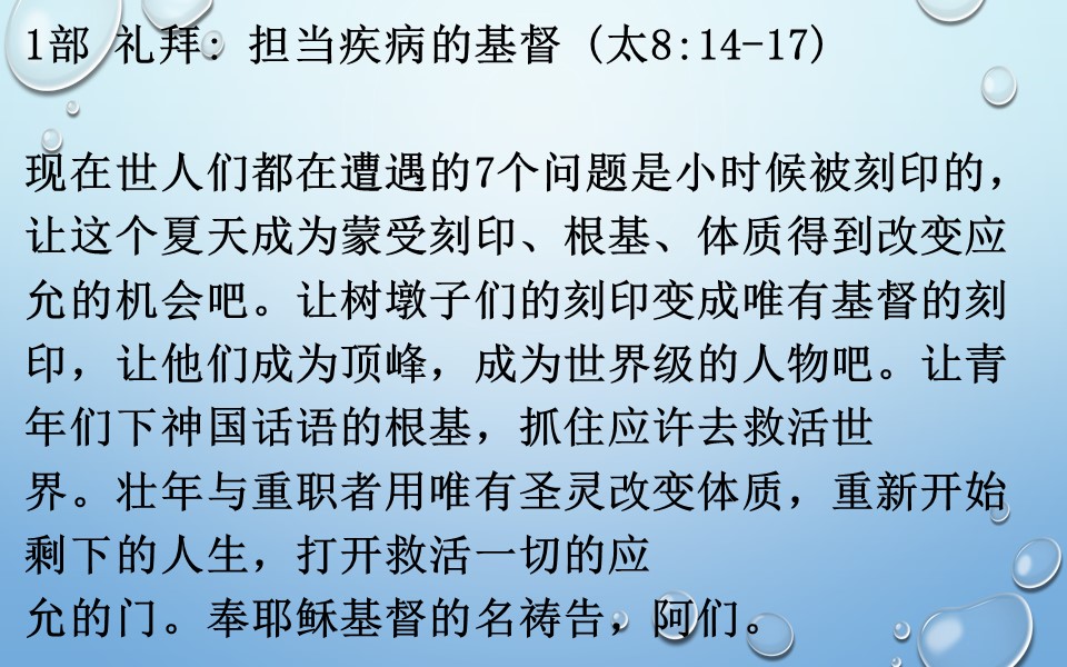 2019년 7월 14일 주일예배 기도제목 – 중국어