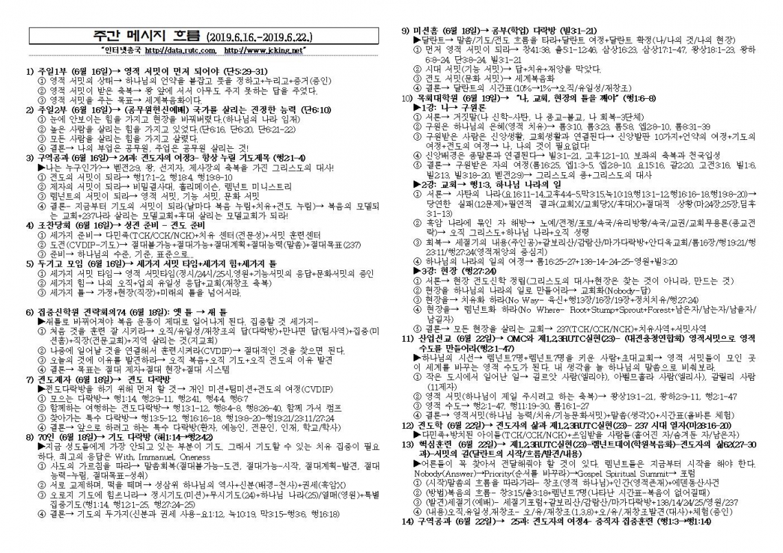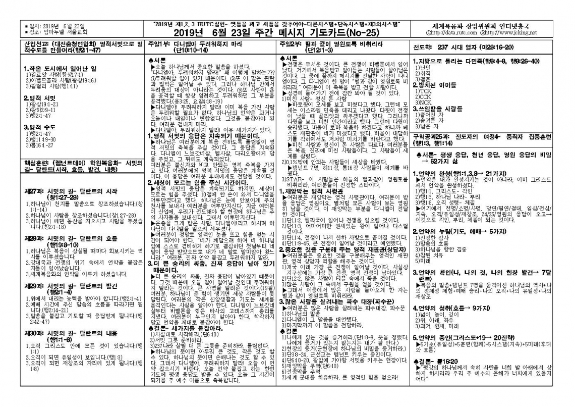 2019년 6월 23일 주일예배 메시지 기도카드