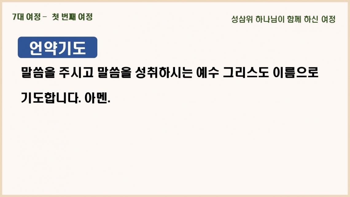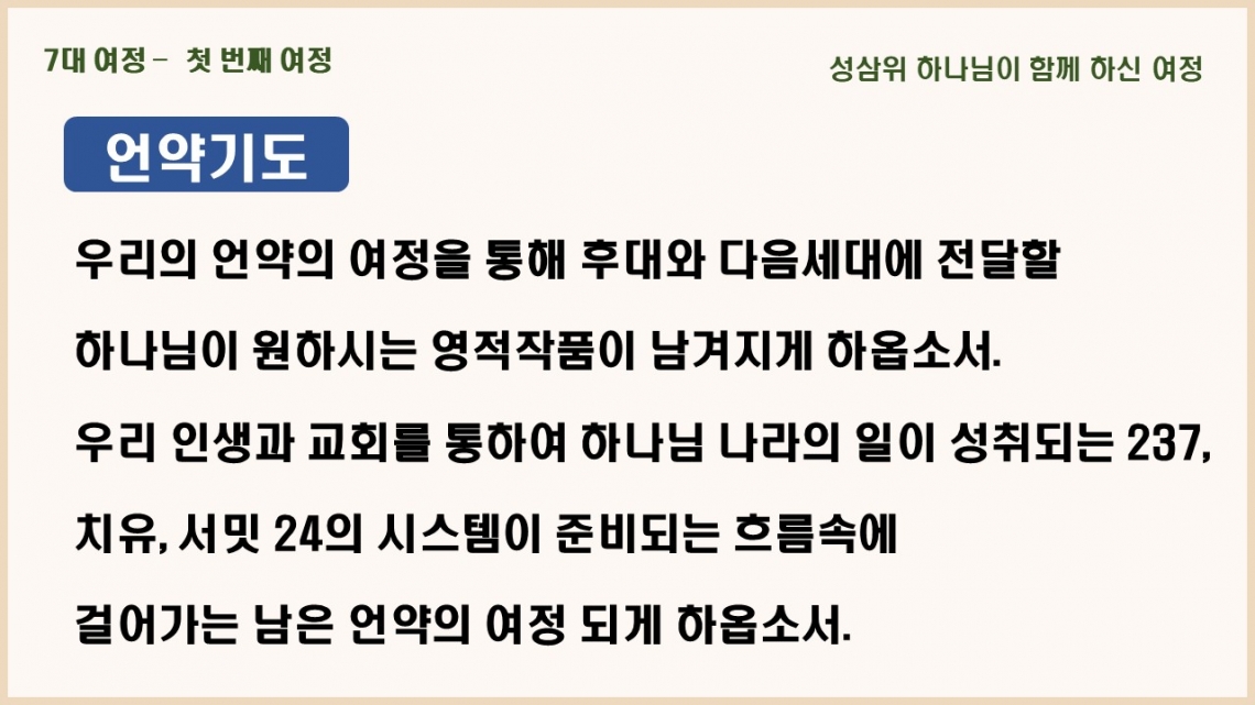 2021년 7월 25일 주일예배 메시지 기도카드