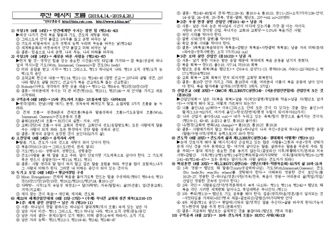 2019년 4월 21일 주일예배 메시지 기도카드