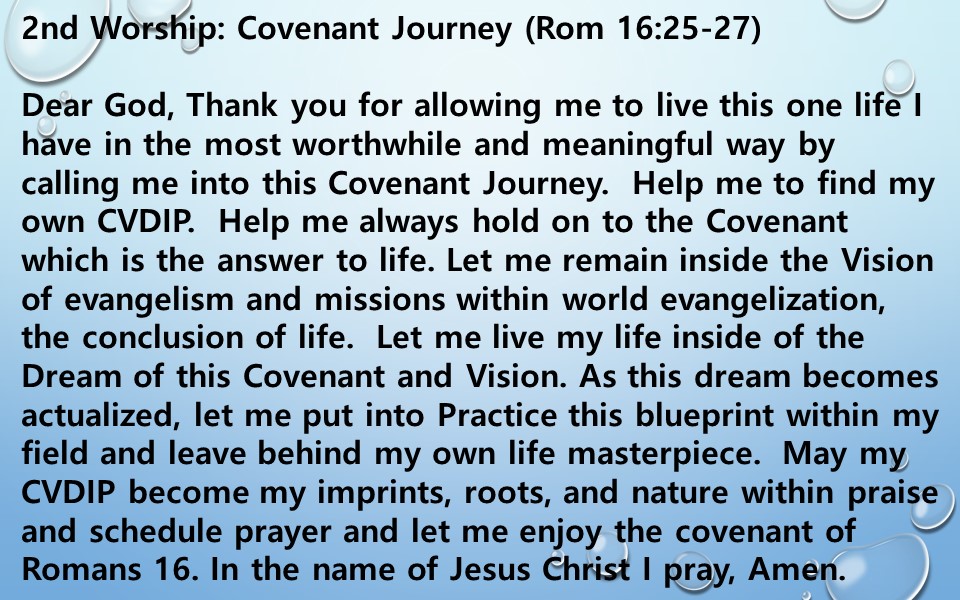 2nd Worship: Covenant Journey  (Rom 16:25-27)