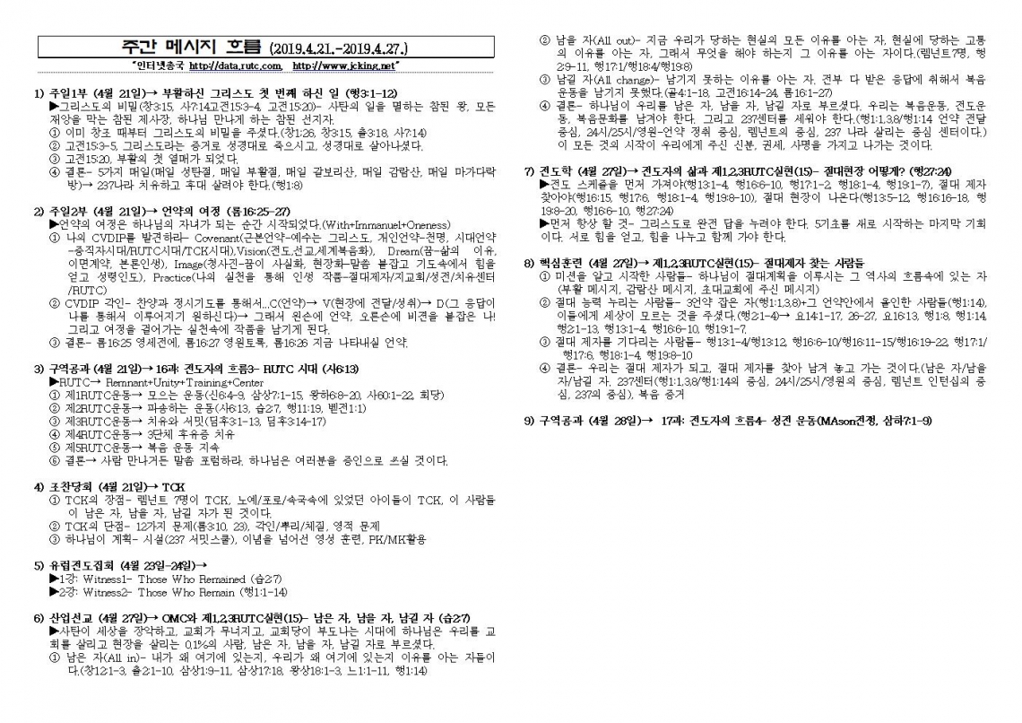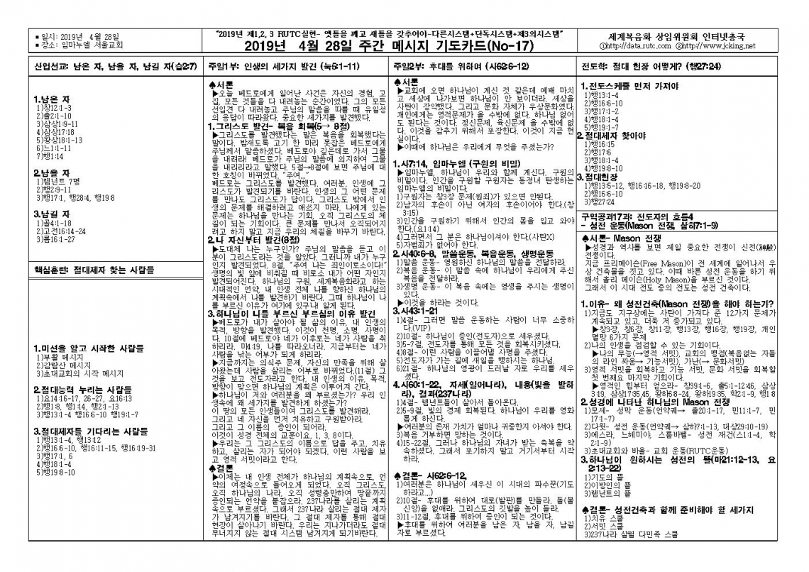 2019년 4월 28일 주일예배 메시지 기도카드