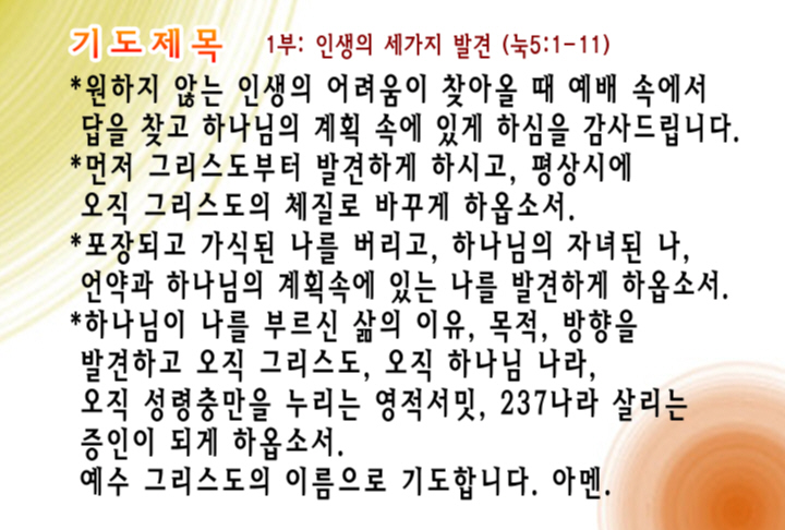 1부 예배: 인생의 세가지 발견 (눅5:1-11)