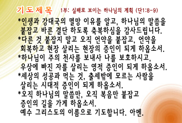 1부 예배: 실패로 보이는 하나님의 계획 (단1:8-9)