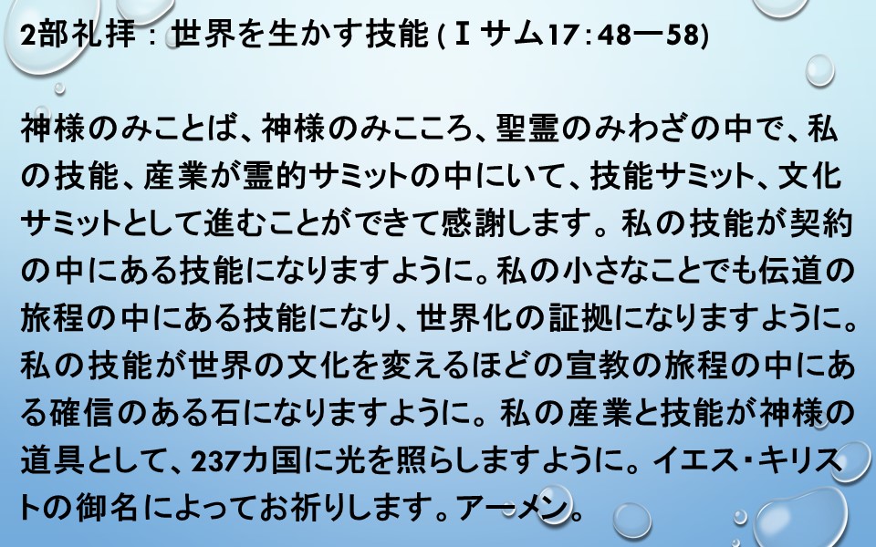神様のみことば、神様のみこころ、聖霊のみわざの中で、私の技能、産業が霊的サミットの中にいて、技能サミット、文化サミットとして進むことができて感謝します。