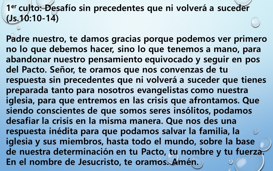 1er culto: Desafío sin precedentes que ni volverá a suceder (Js.10:10-14)