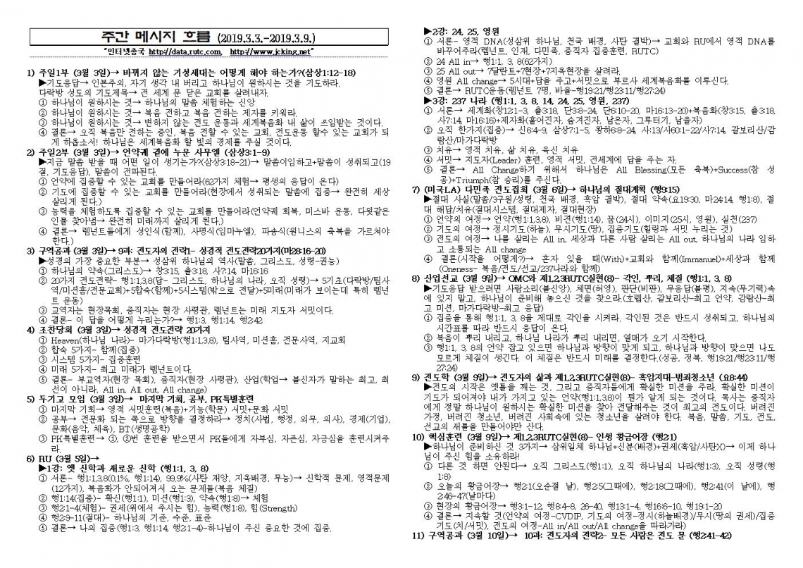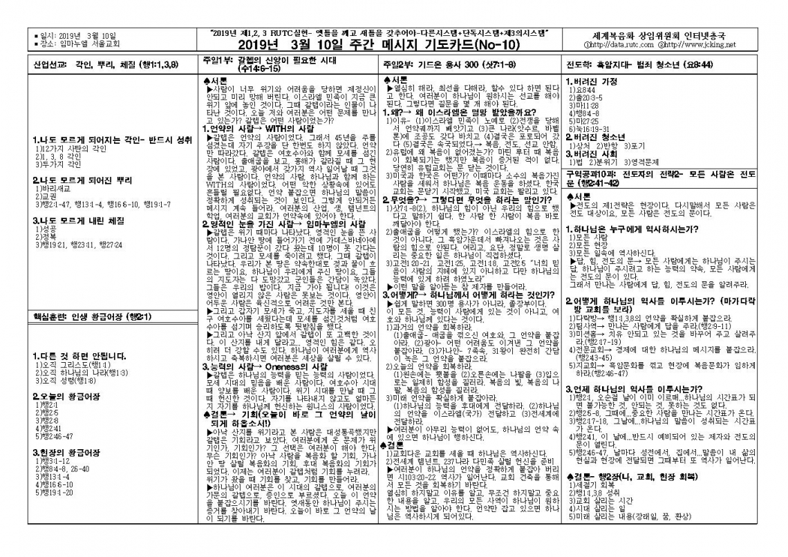 2019년 3월 10일 주일예배 메시지 기도카드