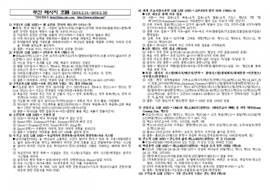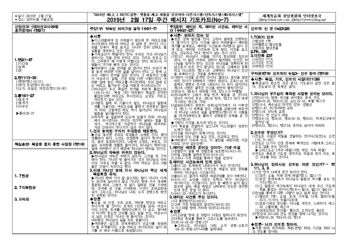 2019년 2월 17일 주일예배 메시지 기도카드