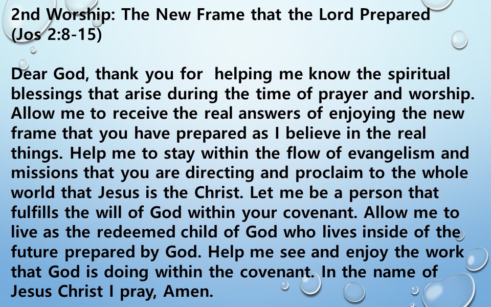 2nd Worship: The New Frame that the Lord Prepared (Jos 2:8-15)