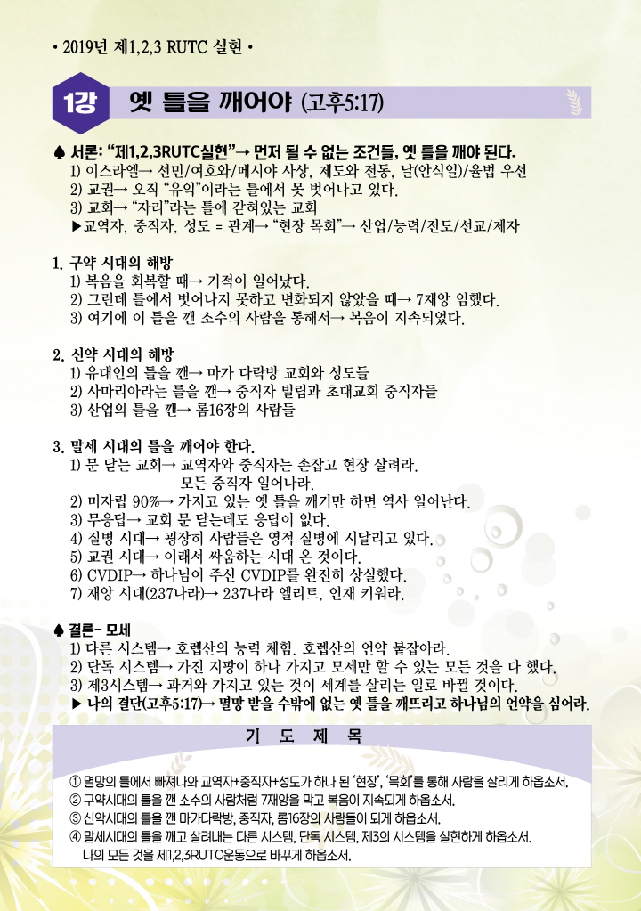 2019년 원단기도회 메시지
