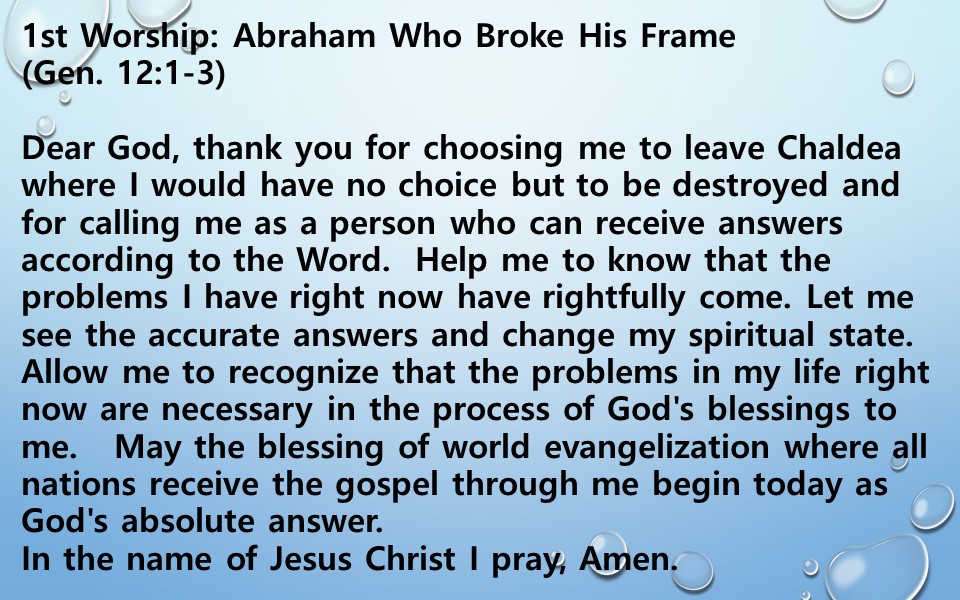 1st Worship : Abraham Who Broke His Frame (Gen. 12:1-3)