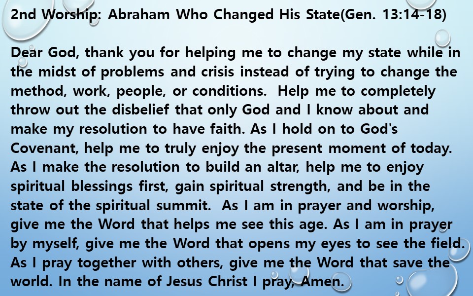 2nd Worship : Abraham Who Changed His State (Gen. 13:14-18)