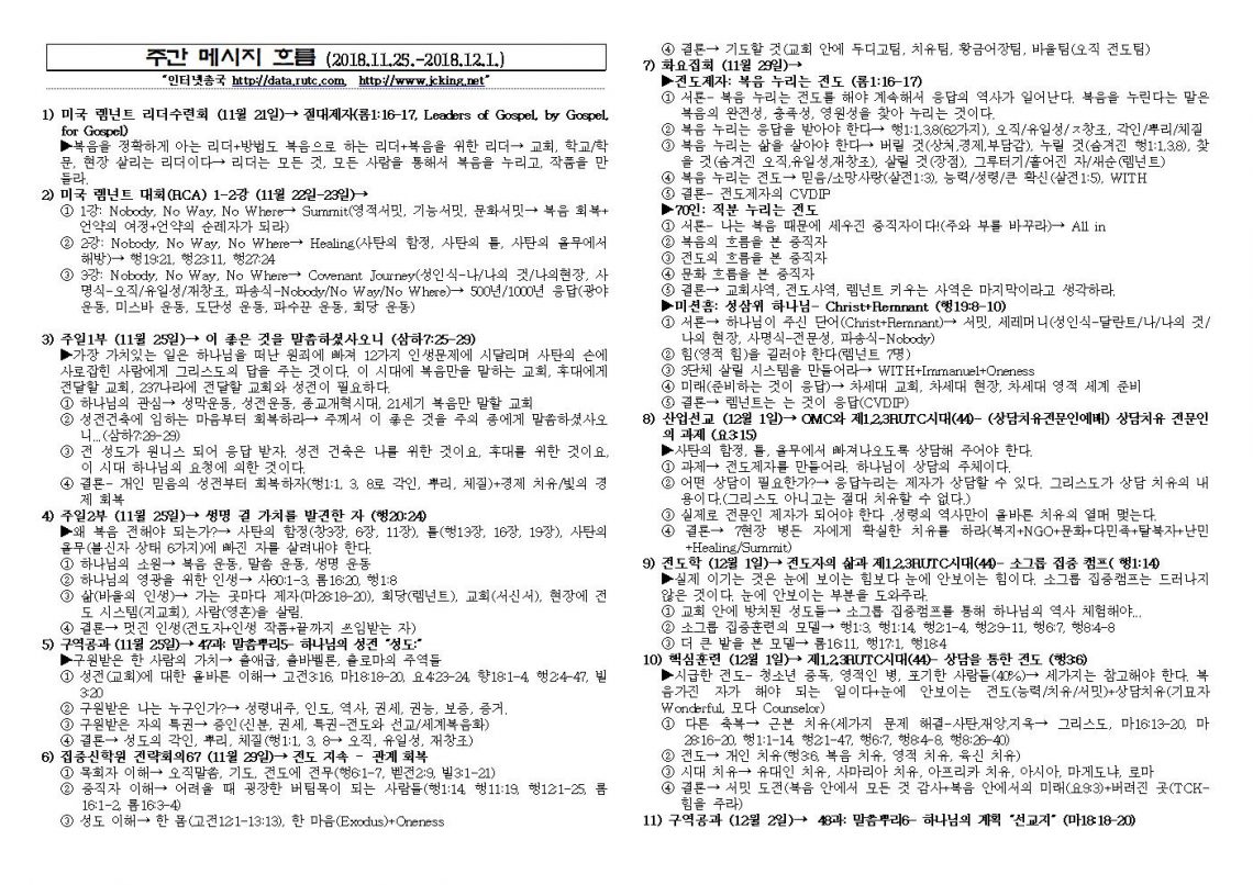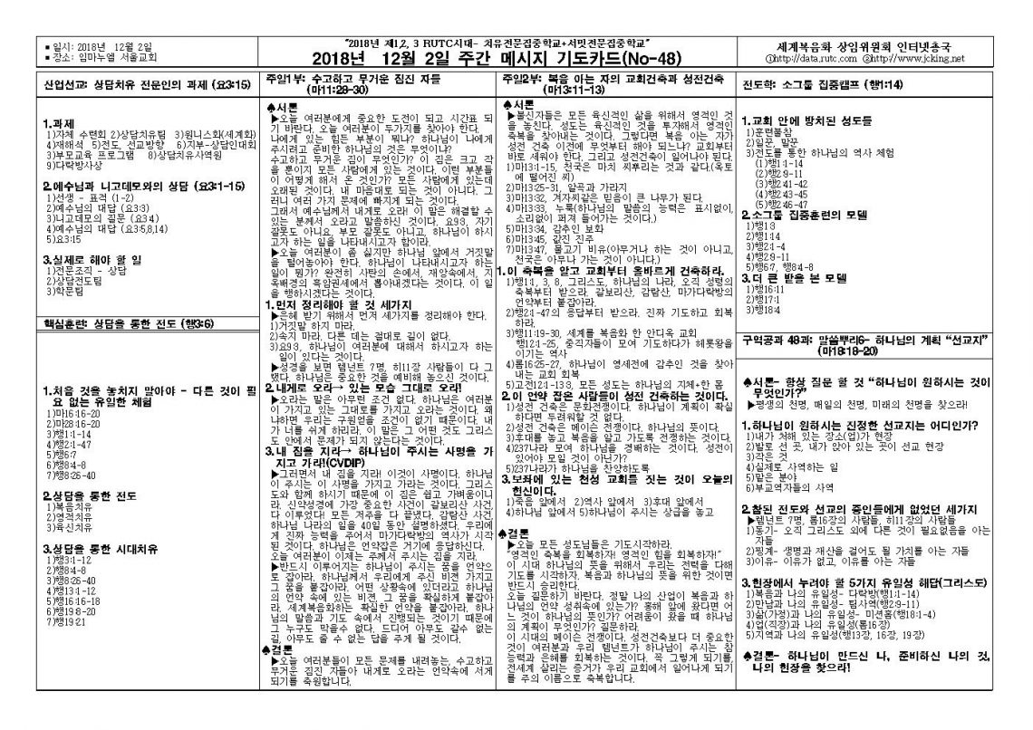 2018년 12월 02일 주일예배 메시지 기도카드