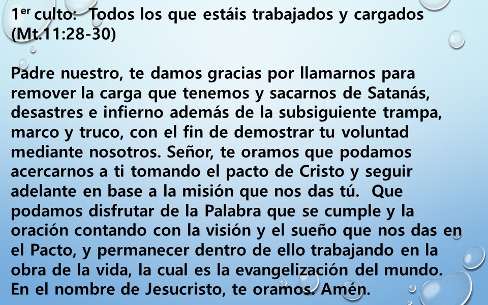 1er culto: Todos los que estáis trabajados y cargados (Mt.11:28-30)