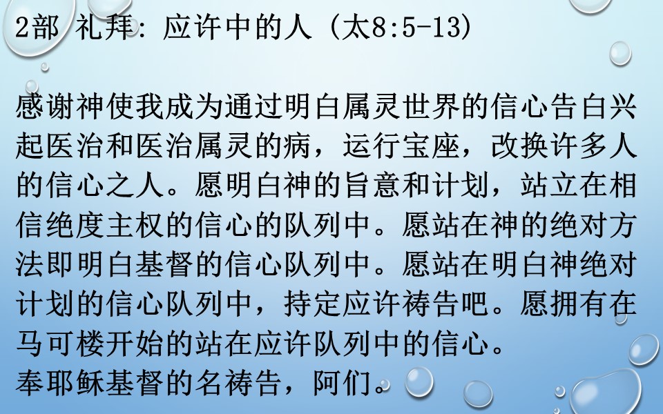 2部 礼拜: 应许中的人 (太8:5-13)