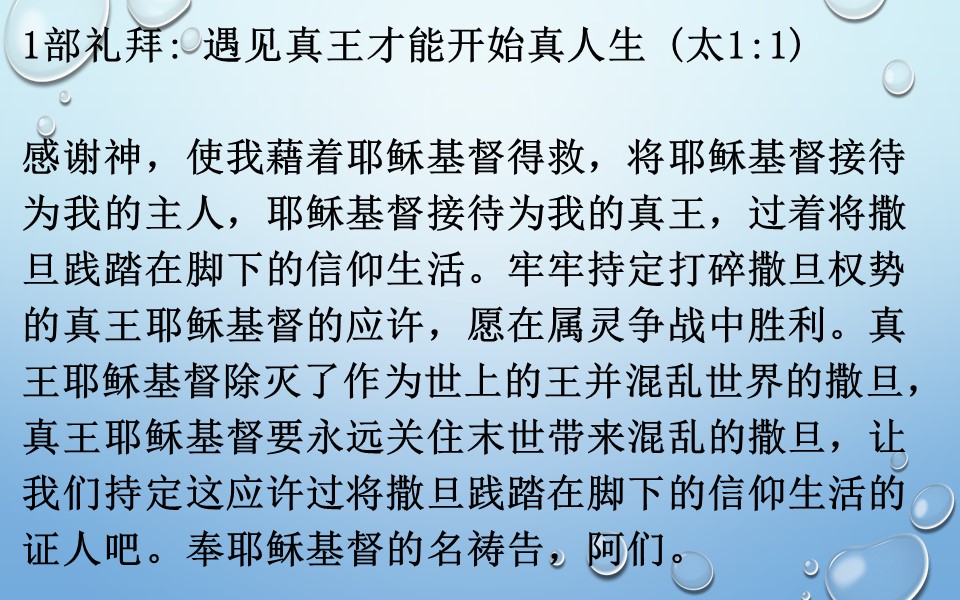 1部礼拜: 遇见真王才能开始真人生 (太1:1)