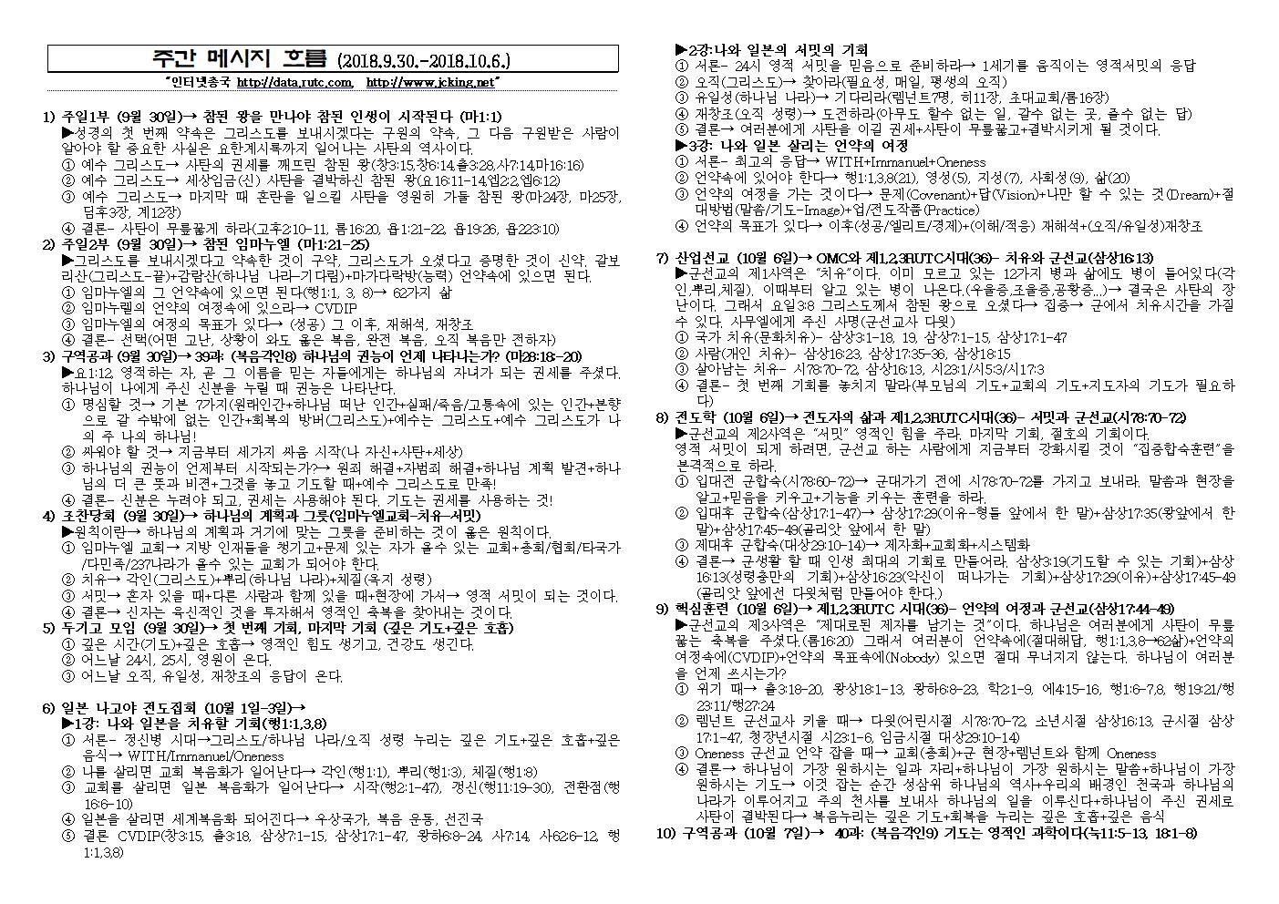 2018년 10월 07일 주일예배 메시지 기도카드