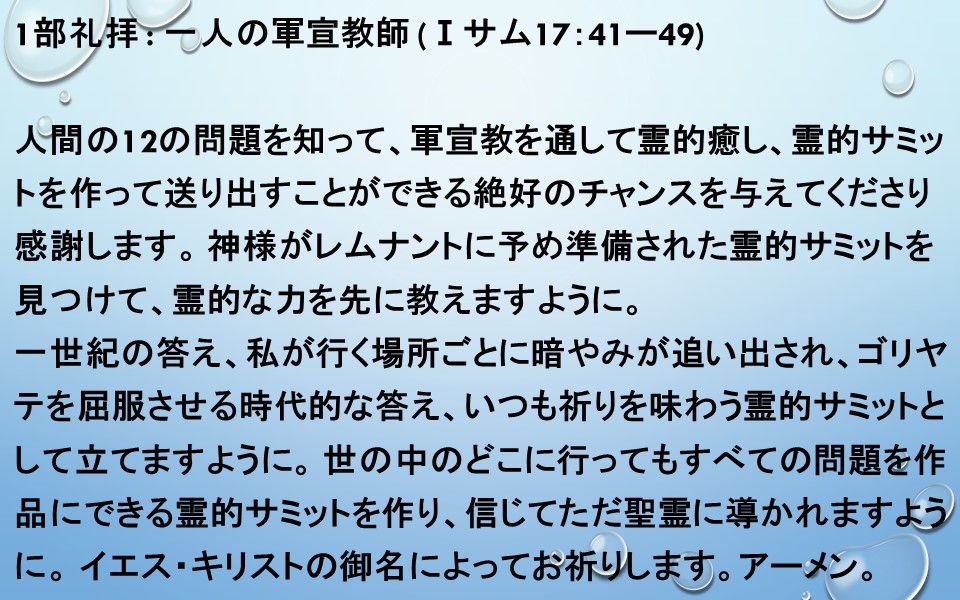 人間の12の問題を知って、軍宣教を通して霊的癒し、霊的サミットを作って送り出すことができる絶好のチャンスを与えてくださり感謝します。
