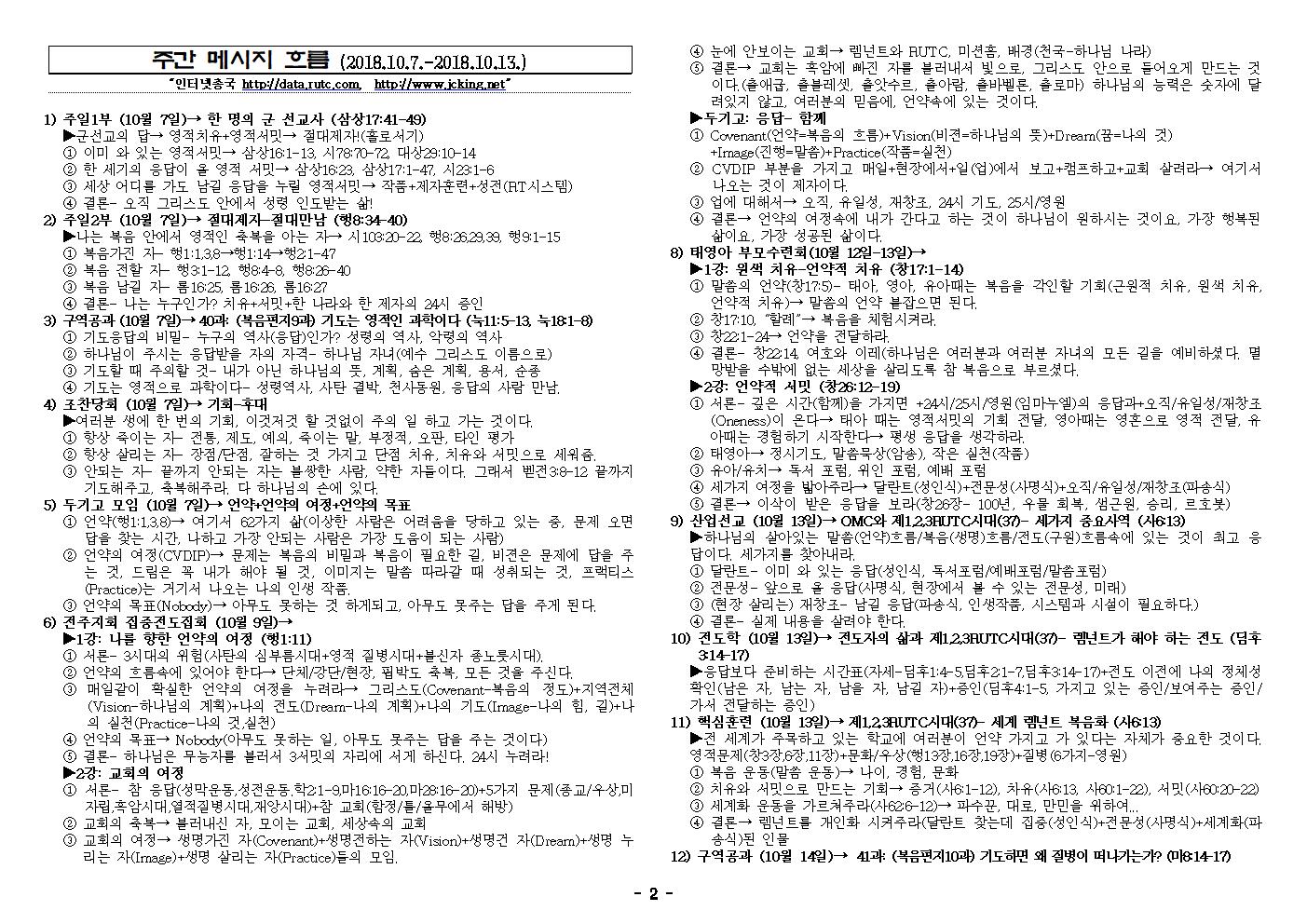 2018년 10월 14일 주일예배 메시지 기도카드