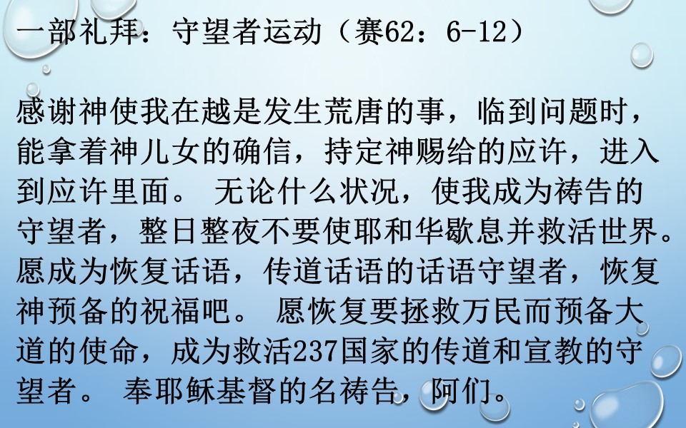 一部礼拜:守望者运动(赛62:6-12)
