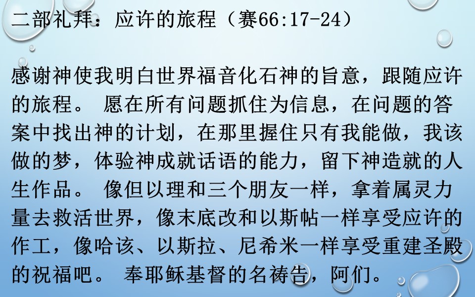 二部礼拜:应许的旅程(赛66:17-24)