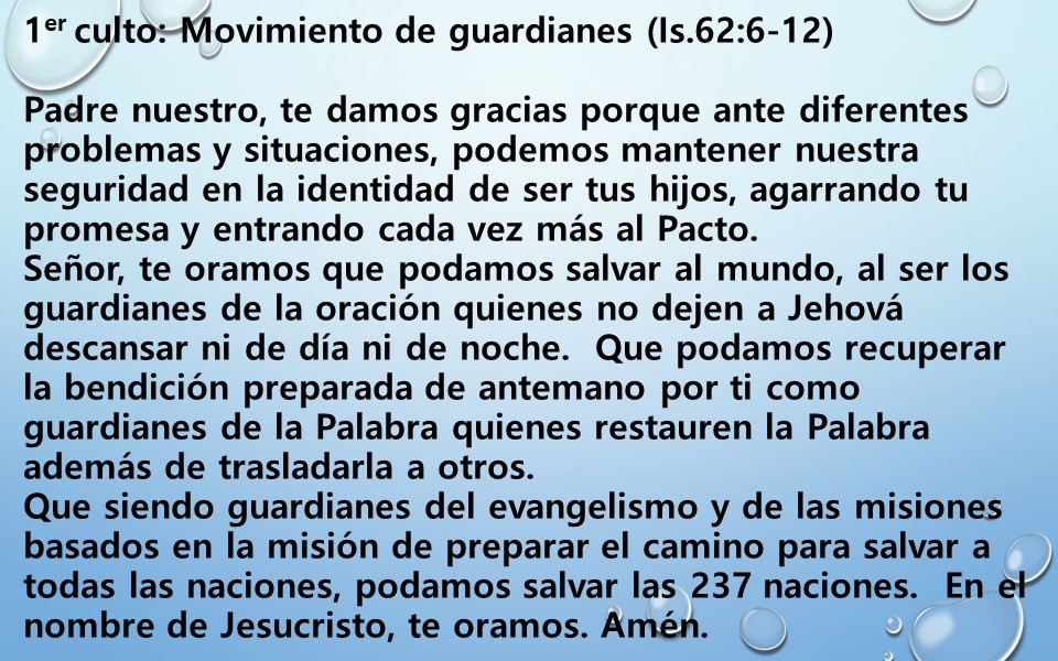 1er culto: Movimiento de guardianes (Is.62:6-12)