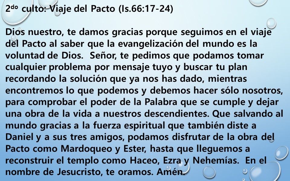 2do culto: Viaje del Pacto (Is.66:17-24)