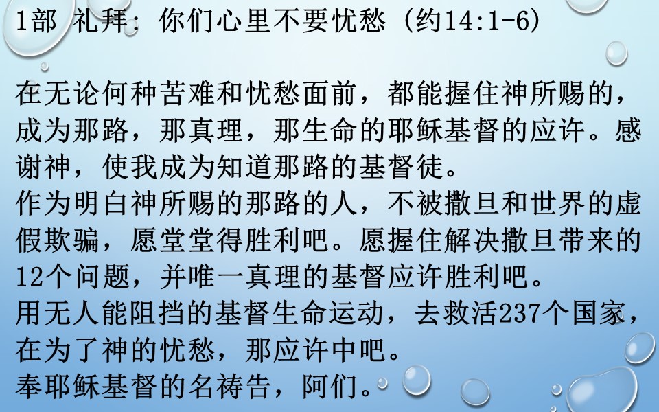 2018년 07월 22일 주일예배 기도제목 – 중국어