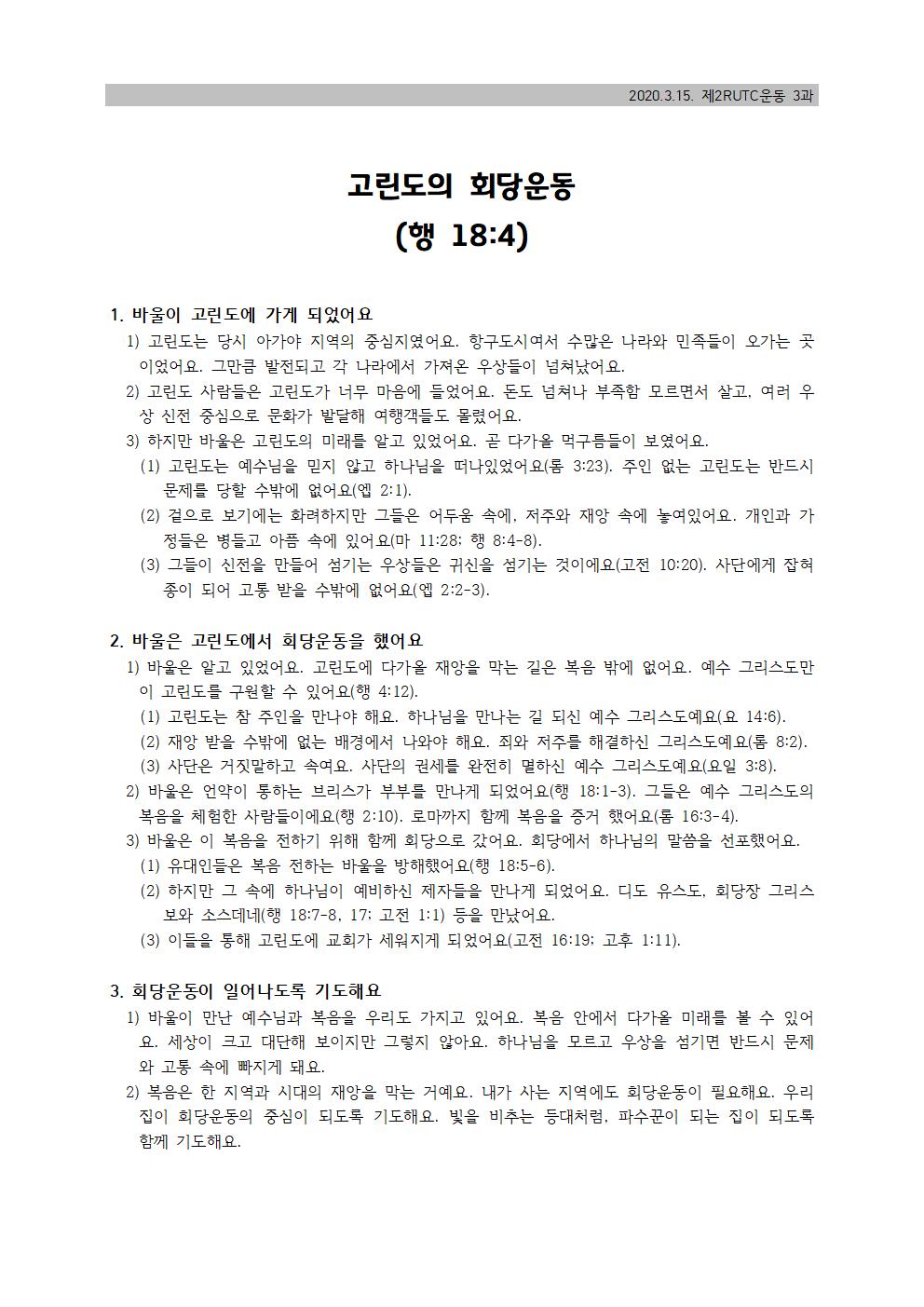 20200315 고린도의 회당운동(행 18:4)