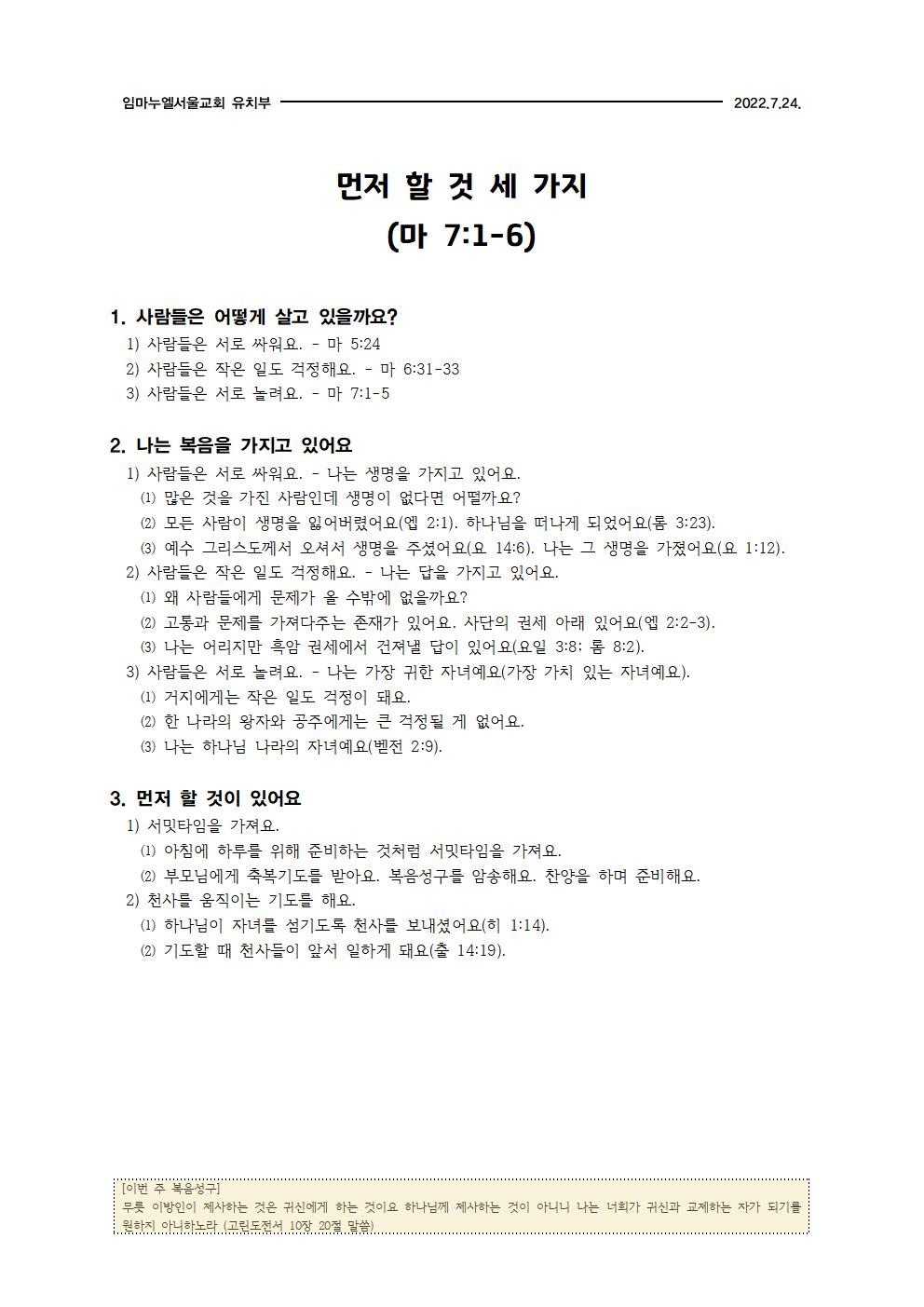 20220724 먼저 할 것 세 가지(마 7:1-6)